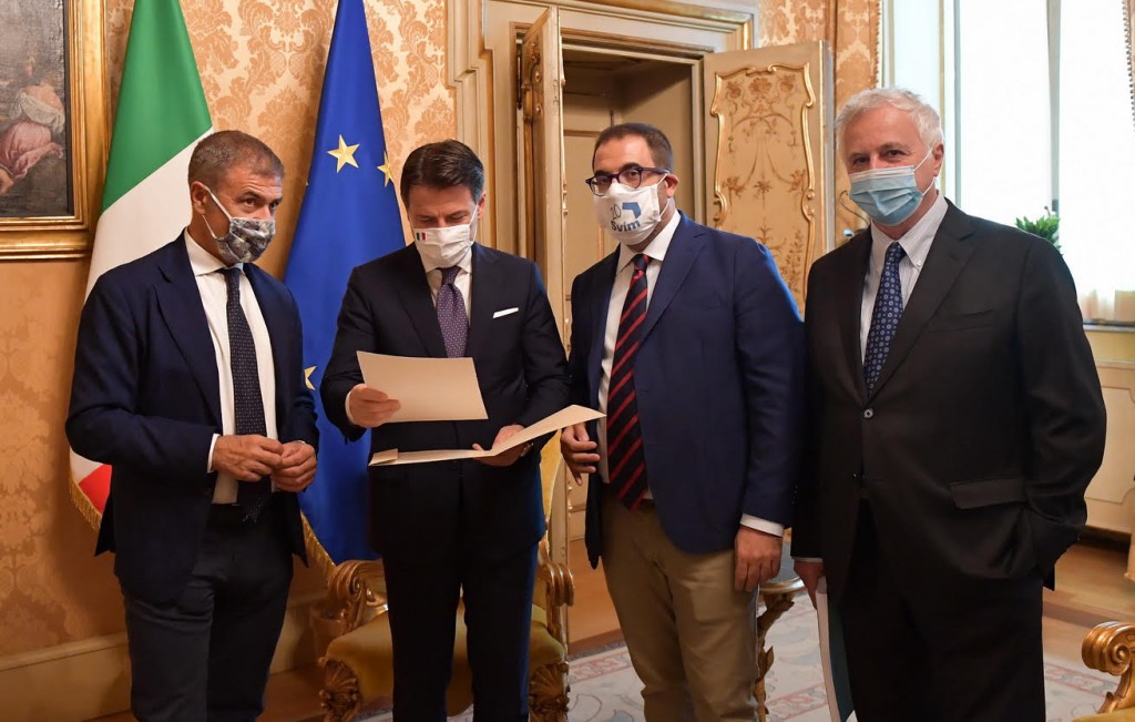 Alfonso Pecoraro Scanio, Presidente della Fondazione UniVerde, ha incontrato lunedì 28 settembre a Palazzo Chigi il Presidente del Consiglio dei Ministri Giuseppe Conte a cui ha consegnato le monete della serie numismatica 2020 della Zecca-Poligrafico dello Stato dedicate ai due simboli del made in Italy.